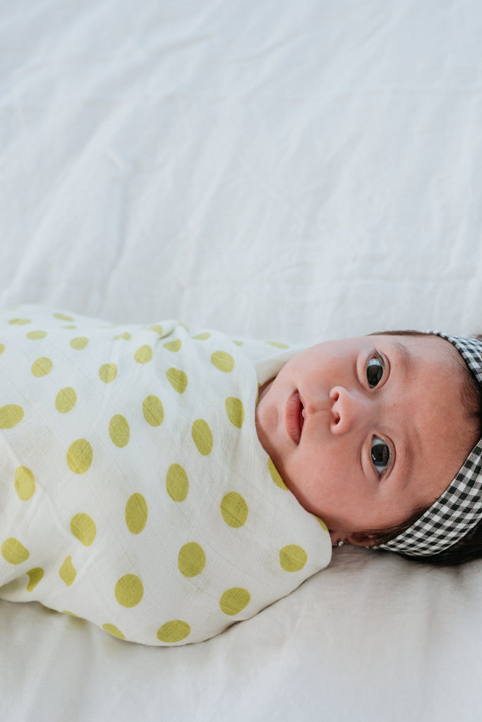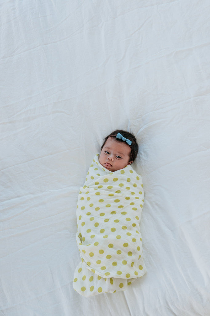 Our new swaddle collection is a way to celebrate our tiniest adventurers and to continue and spark joy through our products. We intentionally chose the unique color palette and polka dots to kindle a spirit of light-heartedness and whimsy in all of life's tiniest moments. Our swaddles are an Organic 100% Cotton + Bamboo blend making them soft and safe to the touch, and produced by our own private Wunderkin Co. label.