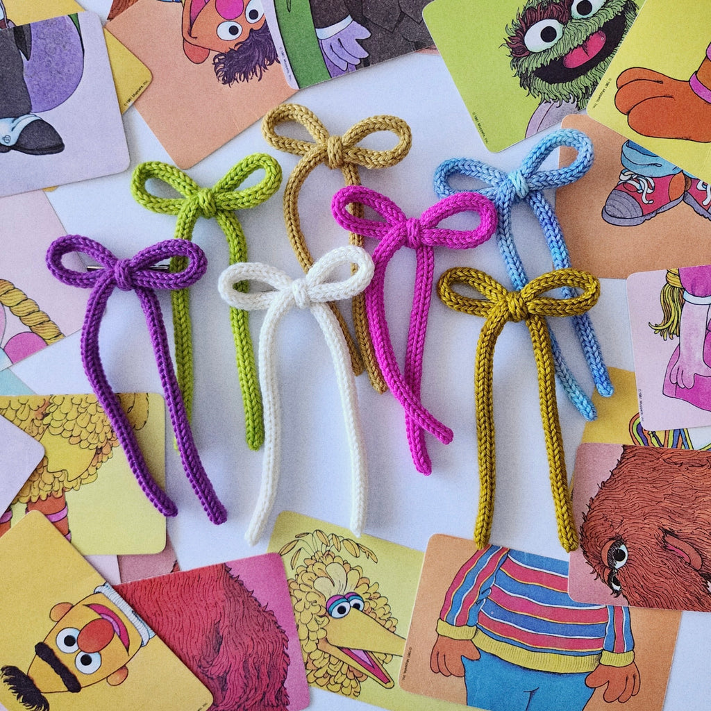 •Hand-Dyed Merino Wool, french-knitted into a bow.