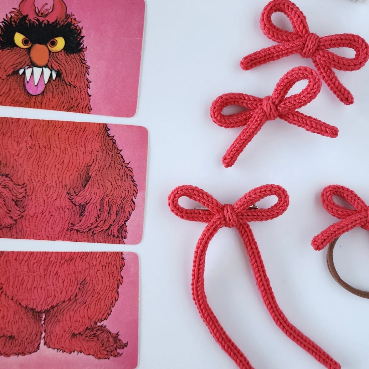 •Hand-Dyed Merino Wool, french-knitted into a bow.