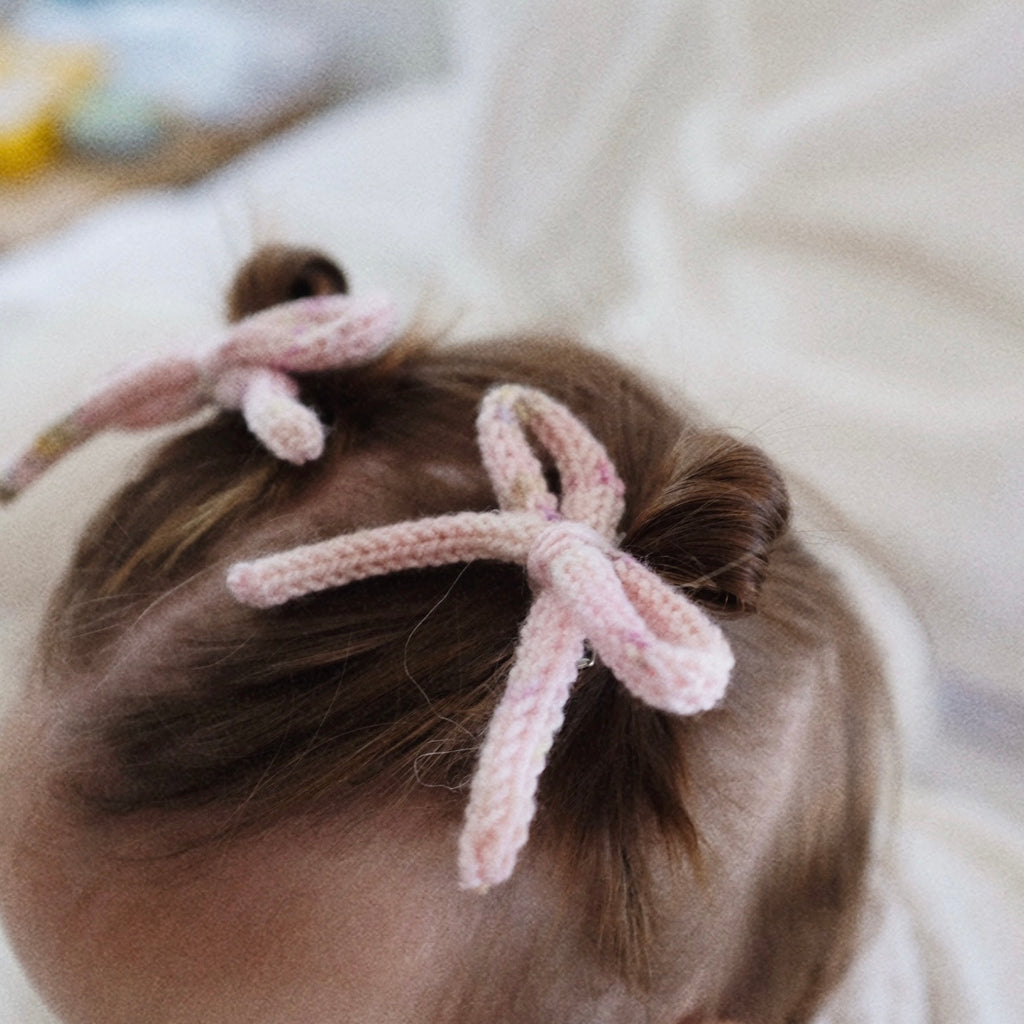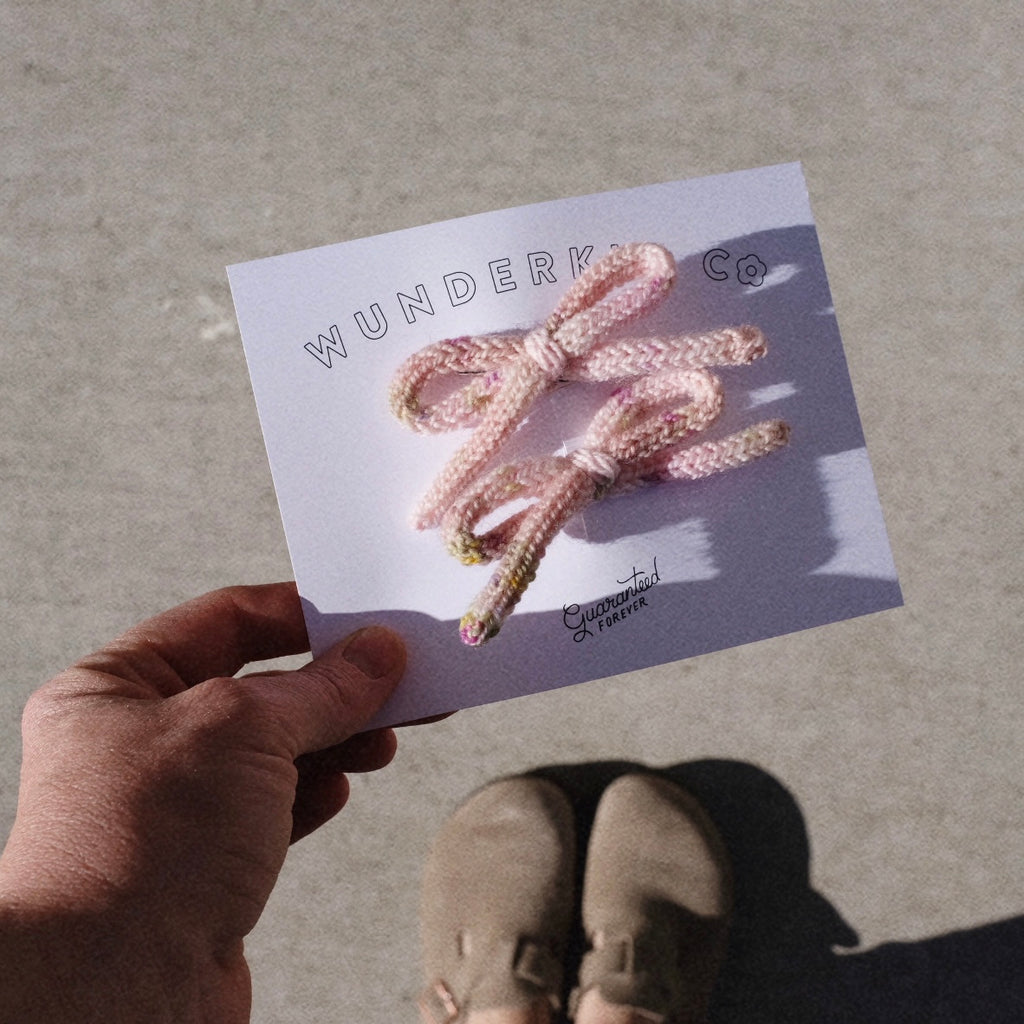 •Hand-Dyed Merino Wool, french knitted into a petite schoolgirl bow.